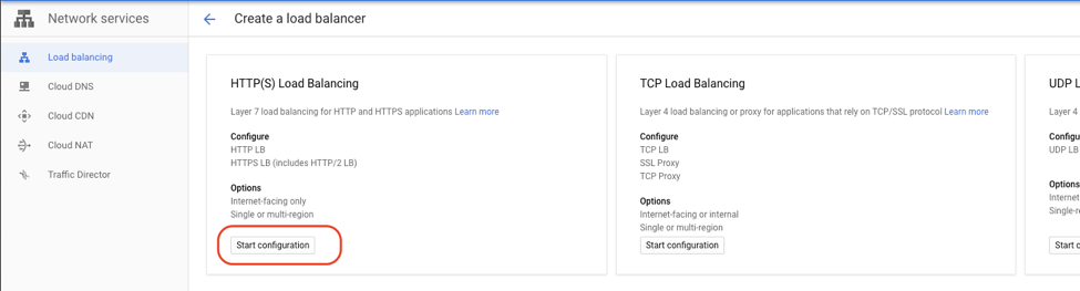 选择 HTTP(S) Load Balancing