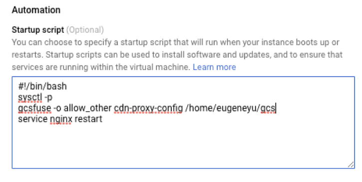 mkdir ~/gcs gcsfuse -o allow_other cdn-proxy-config /home/eugeneyu/gcs