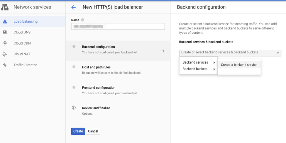 Backend Configuration 选择 Create a backend service