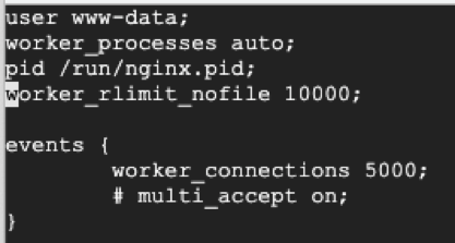 修改 Nginx 的主配置文件 /etc/nginx/nginx.conf,增加最大连接数,并将反向代理配置文件导入。